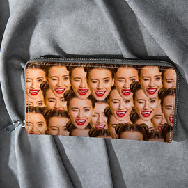 Custom Face PU Leather Wallet Long Style Zipper Wallets For Women