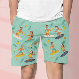 Custom Face Beach Shorts Couple Surfing Sport Gifts