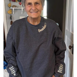 Custom Embroidered Grandma Sweatshirt with Grandkids Names on Sleeve, Personalized Minimalist Gift Grandma Sweatshirt