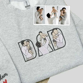Dad Hoodie with Kid Portrait Embroidery | Personalized Photo-Based Sweatshirt | Memorial Gift Idea