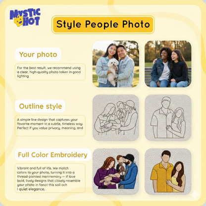 Beyond Automation Our skilled digital artisans meticulously hand-trace every nuance of your uploaded photo. By blending human creativity with advanced, high-speed computerized machinery, we transform your favorite moments into vibrant, high-fidelity textile portraits.